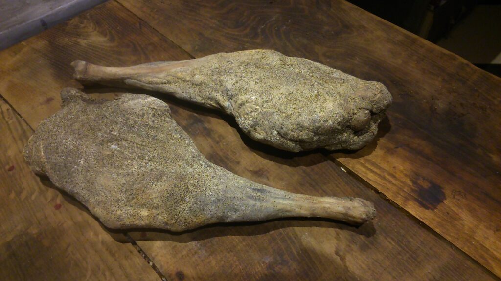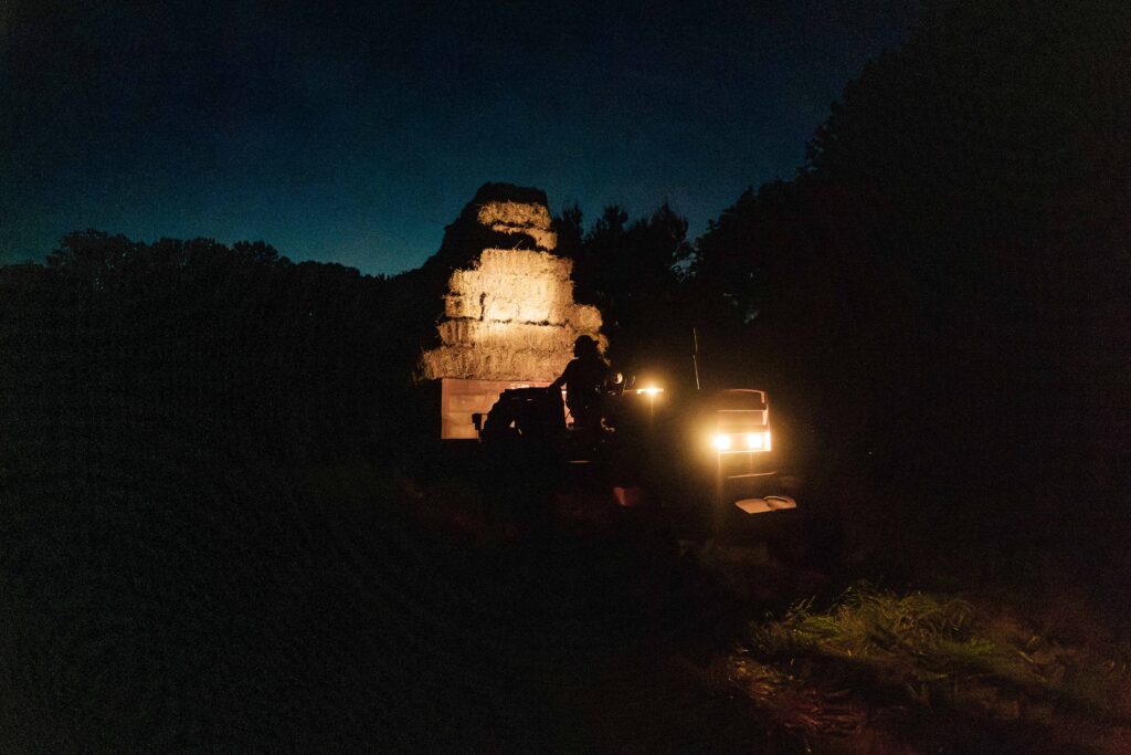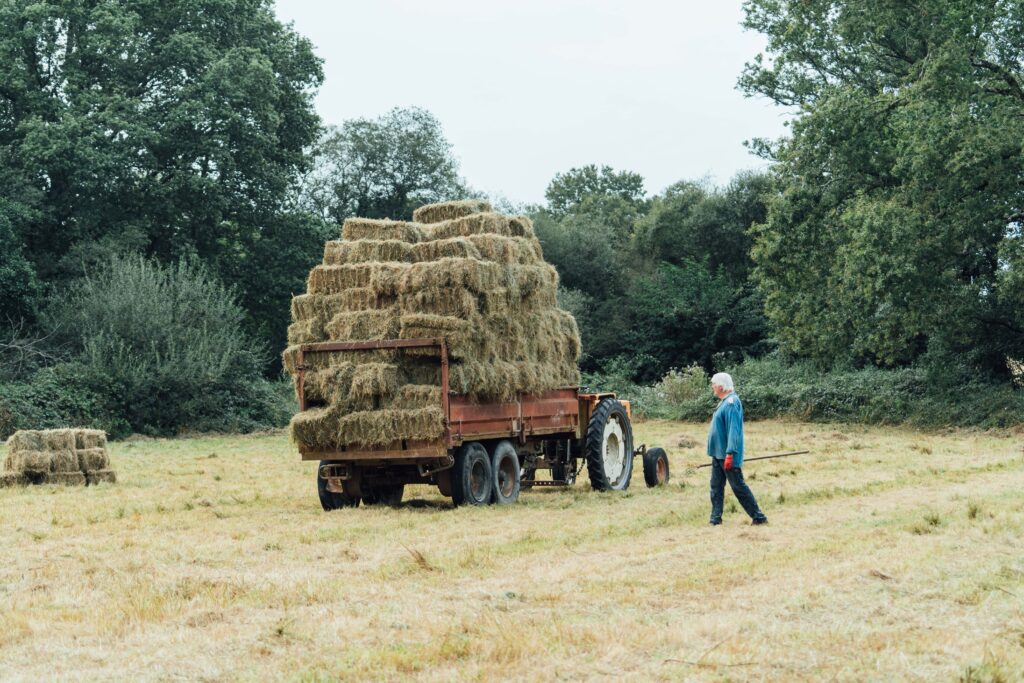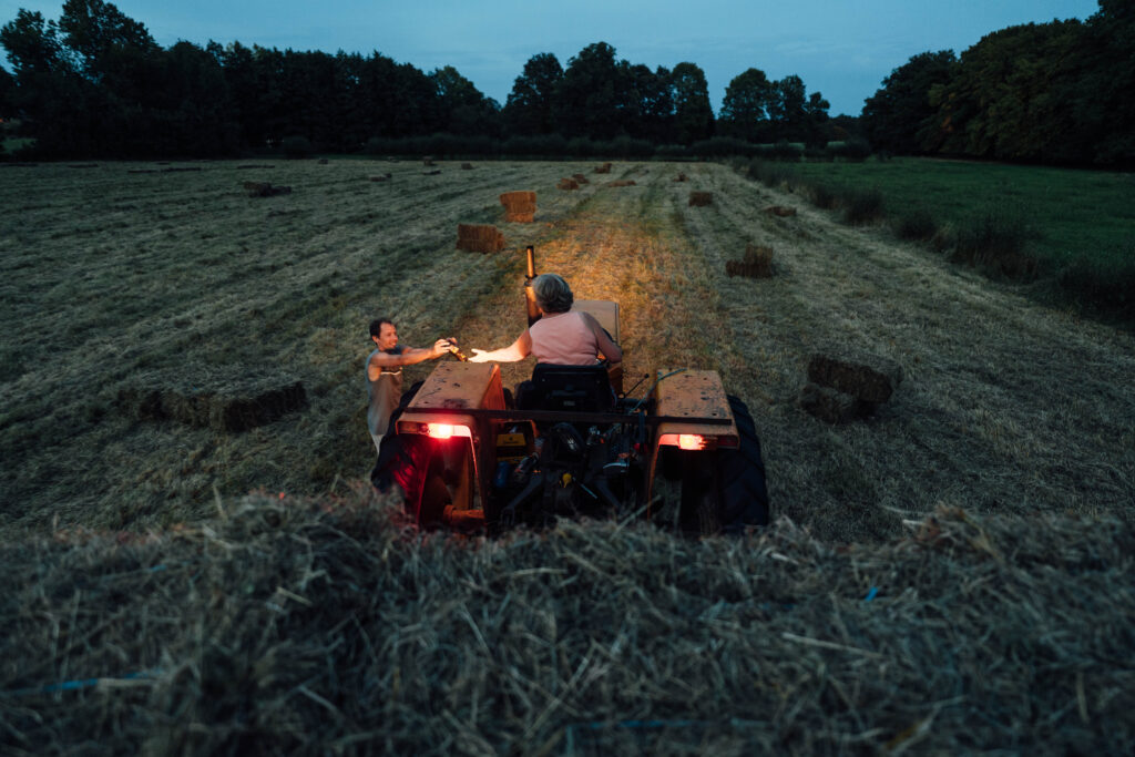 Les brebis rentrées en bergerie sont alors nourries au foin fait sur la ferme en été, et elles sont complémentées en céréales d’une ferme bio voisine (mélange orge/pois/fèves).