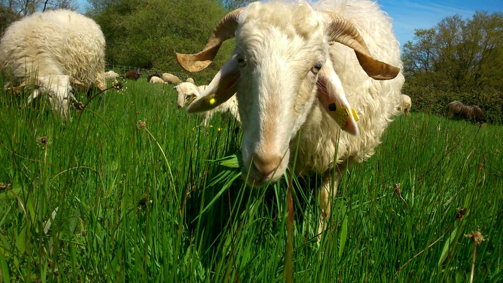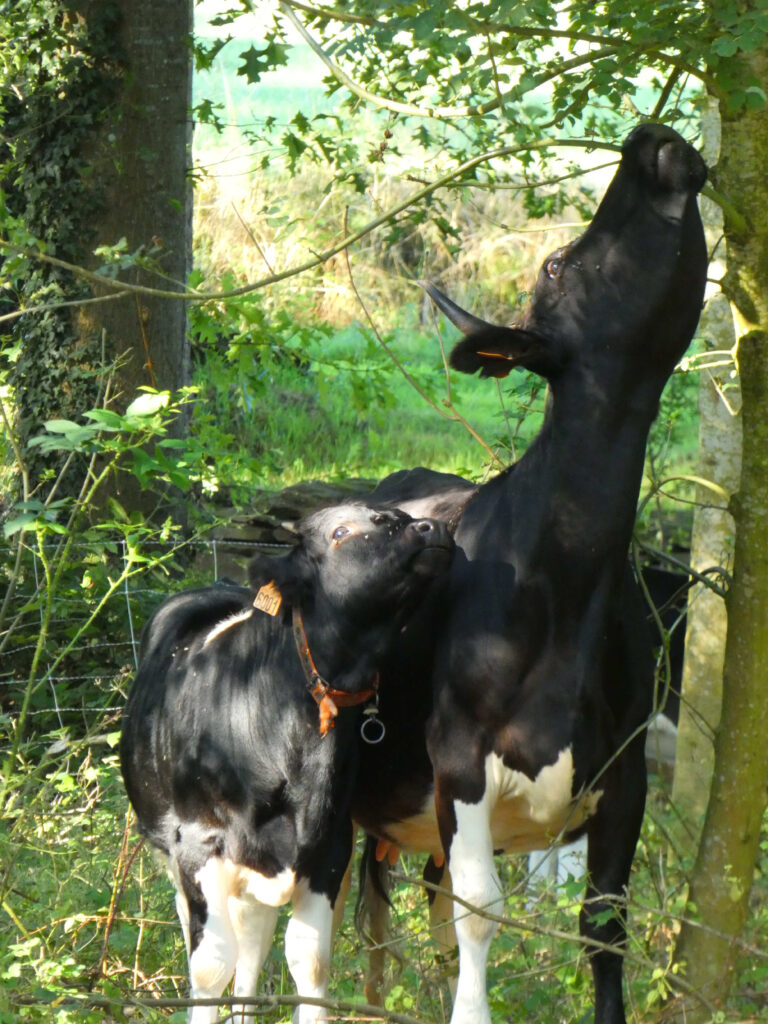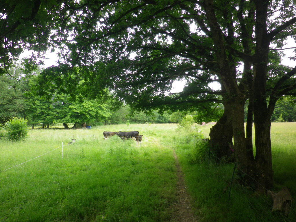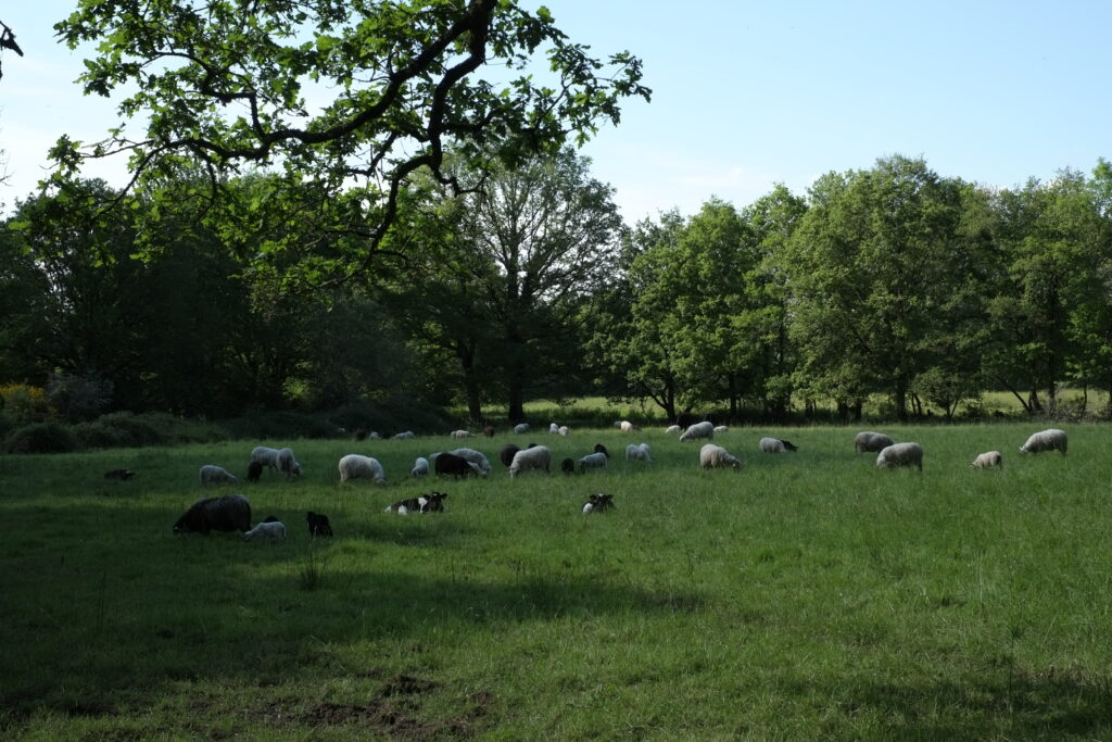 Nos animaux sont élevés sur les neuf hectares de prairies naturelles de la ferme de la Bouvrais. Elles y ont accès au moins pendant 10 mois de l’année; les trois quart des surfaces étant en zone humide, la période hivernale, pluvieuse, ne permet pas de pâturer dans de bonnes conditions.