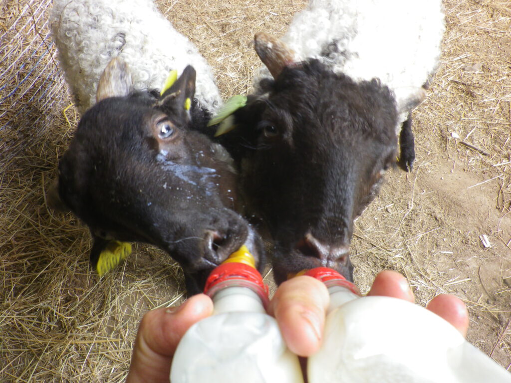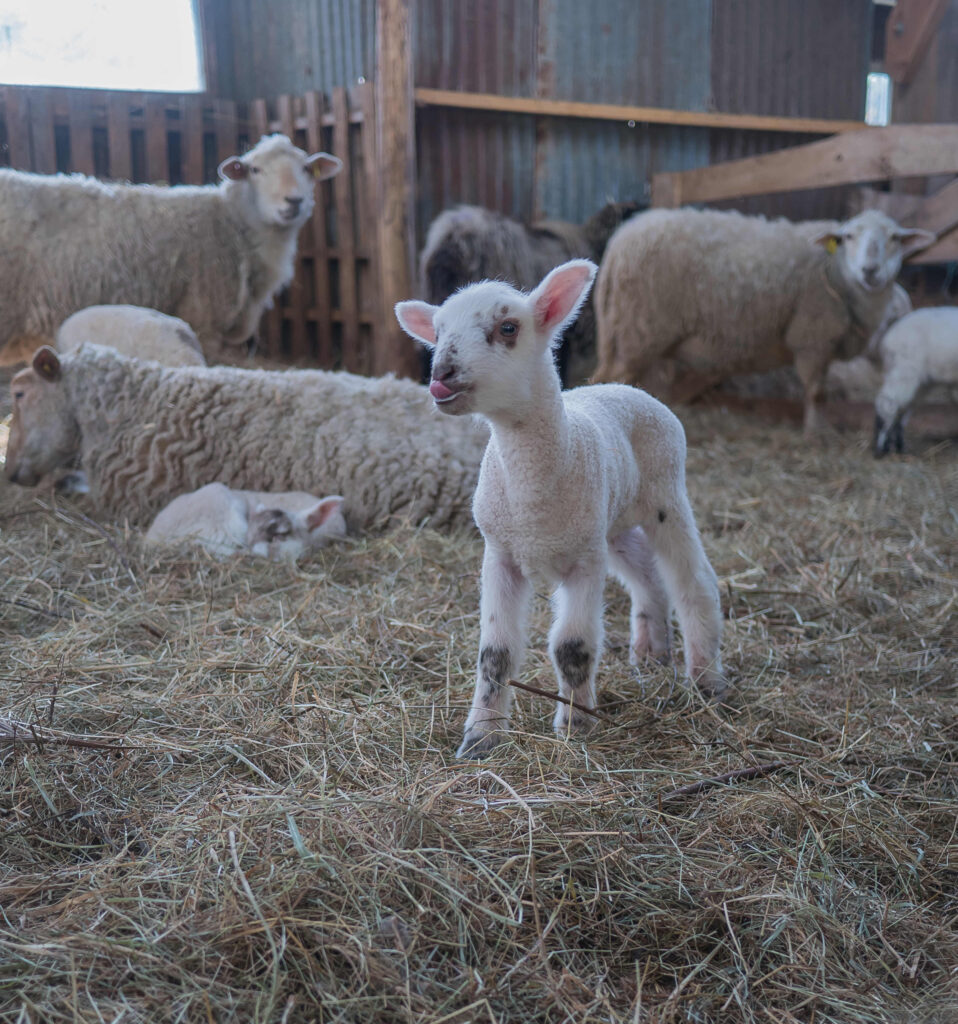 Les agneaux sont élevés sous les mères jusqu’au poids de sevrage de 18kg, à ce stade ils sont en capacité de se nourrir essentiellement d’herbe. Nous tenons à tendre vers cette cohérence, partager le lait de leur mère avec eux et ne pas les envoyer en centre d’engraissement ou à l’abattoir trop jeune…