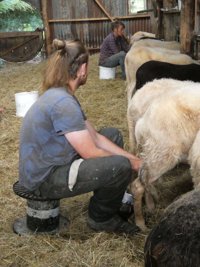 Nos brebis sont de races mixtes, La moitié du troupeau est de race Belle-île (bretonne en cours de sauvegarde, elle a faillit disparaître dans les 70’s), croisée pour certaine avec de la Lacaune (d’Aveyron); Nous nous sommes récemment tourné vers la basco-béarnaise, brebis laitière, rustique, des pyrénnées atlantiques; puis les ont rejoints des manex tête noire, ainsi qu’un bélier Thônes et Marthod (Savoie) croisé Manex… Vive la biodiversité!